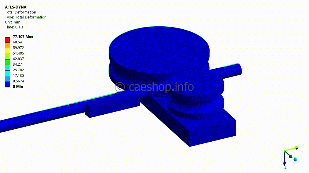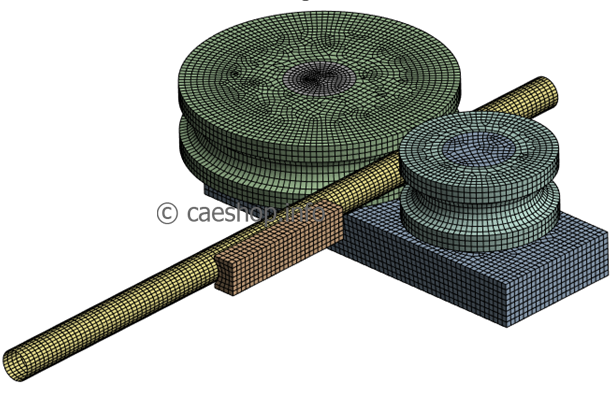 In this problem, thin tube model (Shell) is used with other details such as die, rotating shaft.