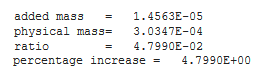 The unit system being used is (tone, mm) so the added mass is 1.4563E-5 tone which is equivalent to 2.8% of the actual mass of the system. This value will not cause too much difference.