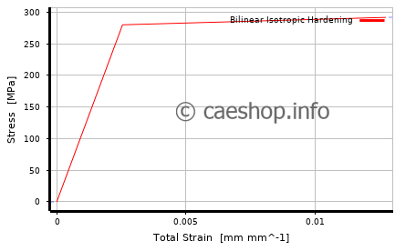 The tube is made of copper alloy with Bilinear Isotropic Hardening material model (yield point at 280MPa)